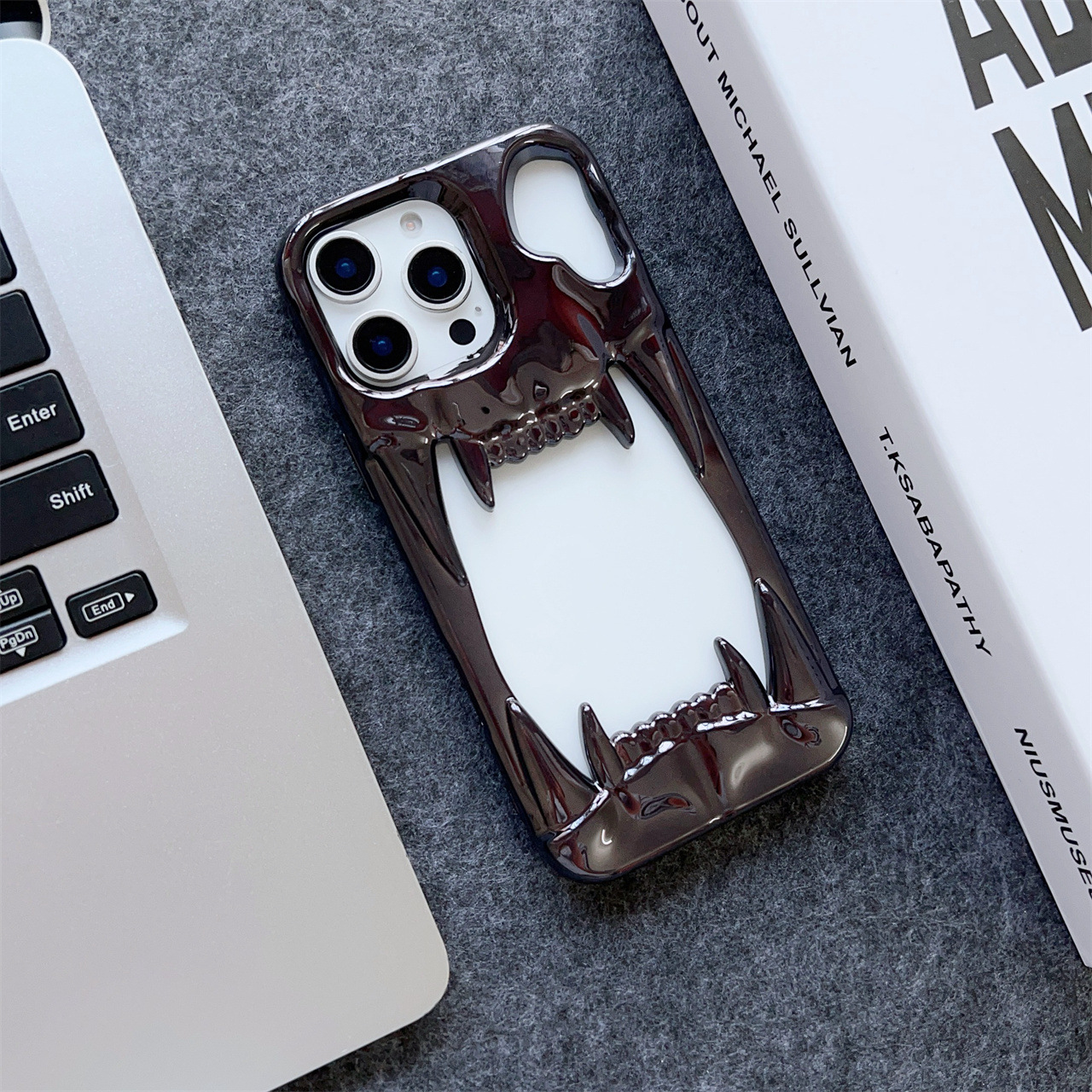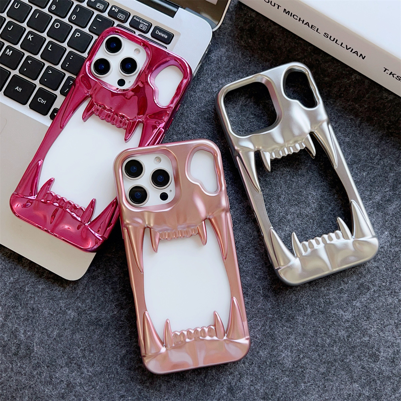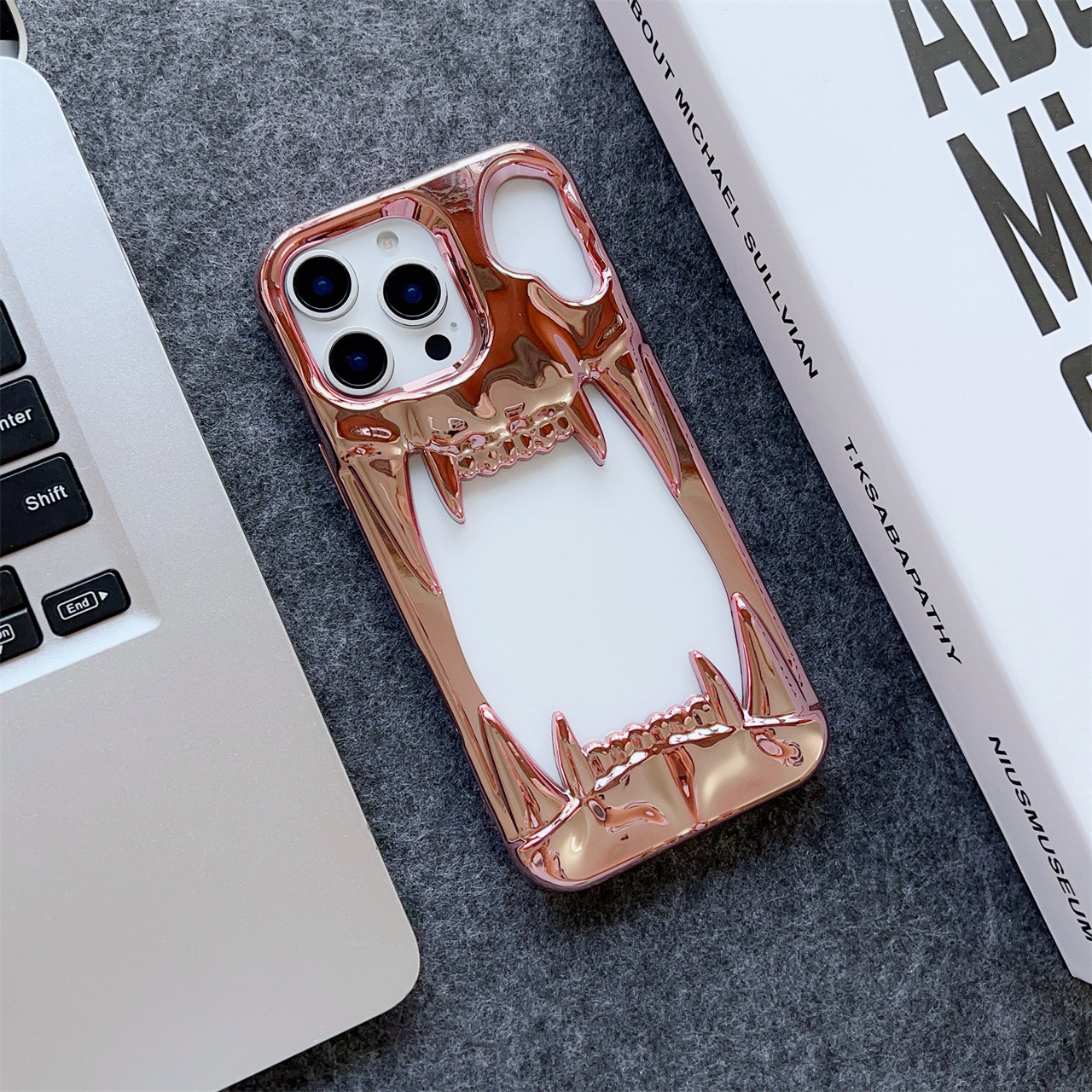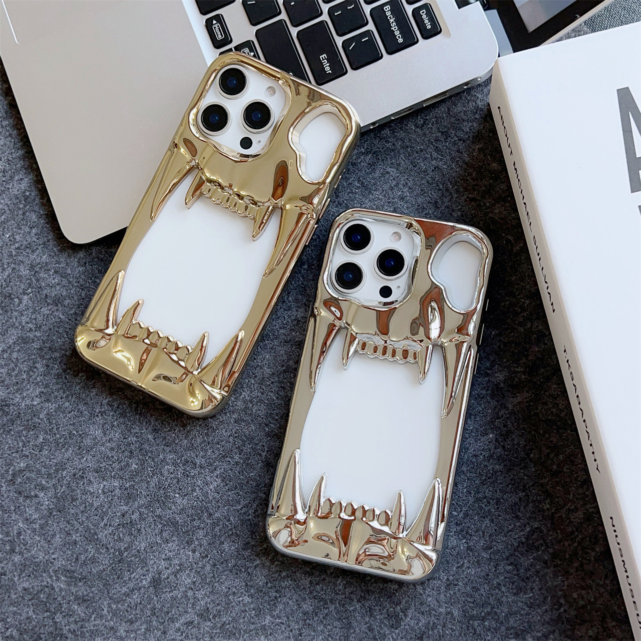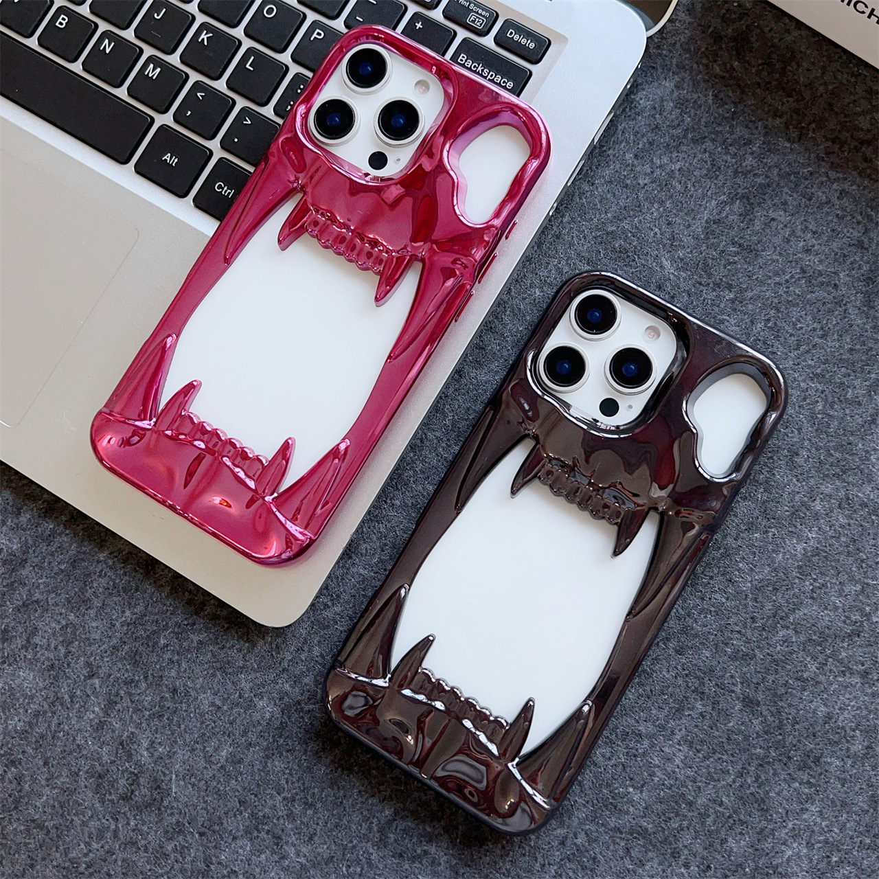 Electroplated Tiger-tooth Skull Phone Case With 15 Cutouts